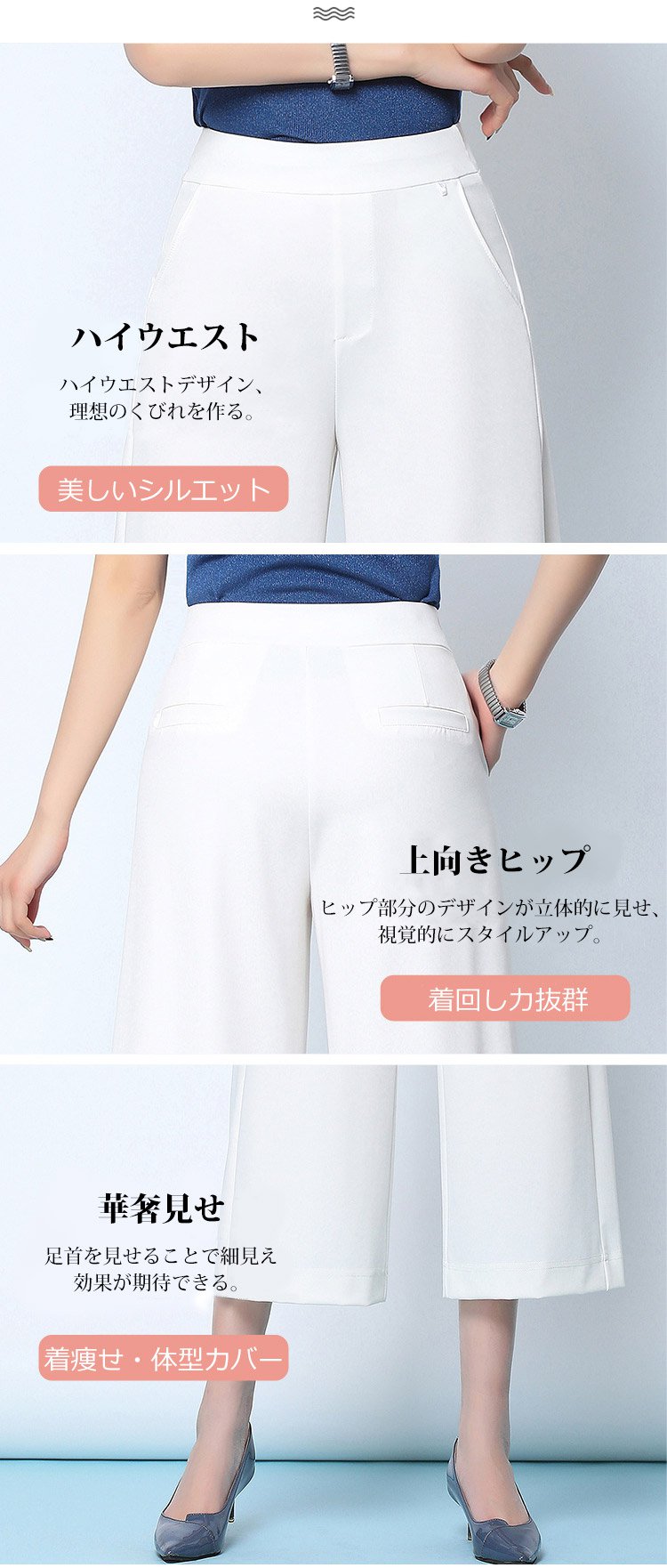 【九分丈ワイドパンツ】美ライン九分丈ワイドパンツ