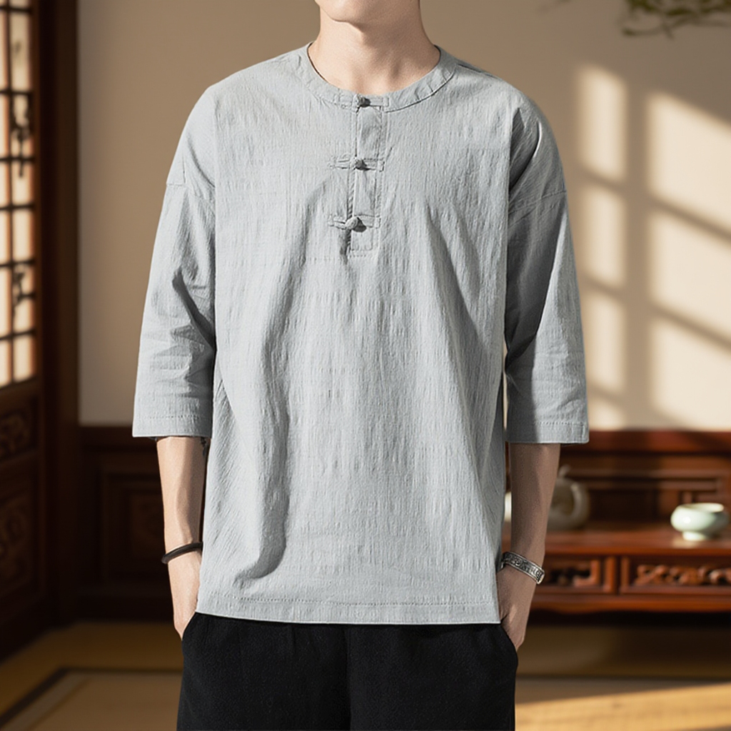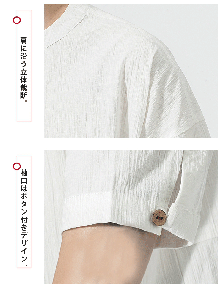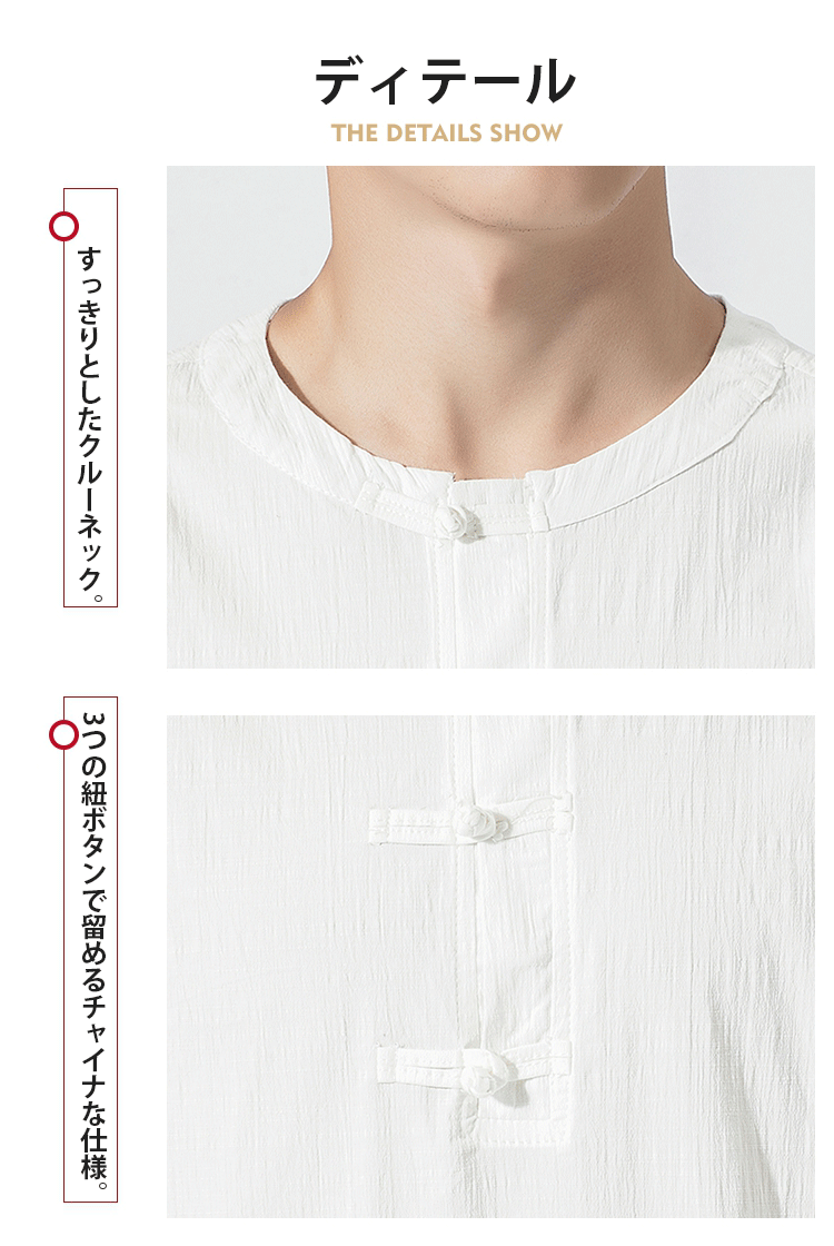 【チャイナシャツ】リネンを楽しむ、シンプルワンピース。