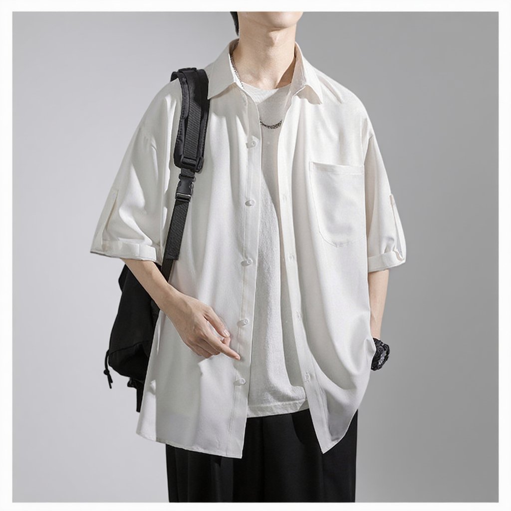 アイスドレープファッションシャツ 夏のルーズカップル薄手半袖シャツ タイドシャツ五分袖カジュアルシャツ